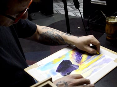 El tatuaje llegó a mi vida de forma inesperada, y me entregué por completo a este arte. Aunque ocasionalmente pintaba obras por encargo, mi producción artística se centró en el tatuaje, hasta que descubrí en los cursos en línea de bellas artes la posibilidad de dominar técnicas que no solo alimentaron mi pasión, sino que también me otorgaron reconocimiento en la industria.
